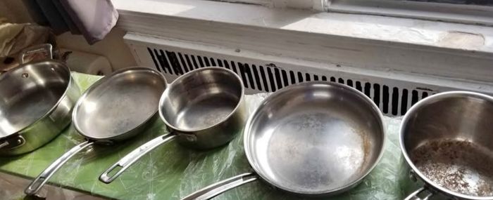 Stainless steel looks intimidating, but a quick soak in warm water and a dab of Bar Keepers Friend brings it back to a mirror shine.